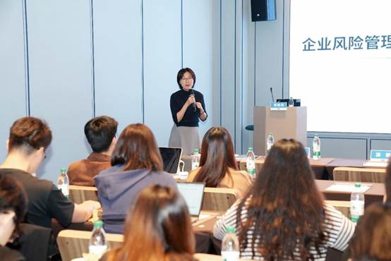 之后由水滴研究院负责人谭荔丹老师从专业角度系统解析了企业风险管控体系。她提出风险管理的核心流程是风险识别、风险评估和风险应对,并强调企业应建立动态的风险监控指标和风险管理体系。她特别指出“法治保障是创新的重要基础”,这一观点与中国政法大学MBA合法合规基础上的商业创新培养目标深度契合,为学员们提供了可操作的风险管理方法论。